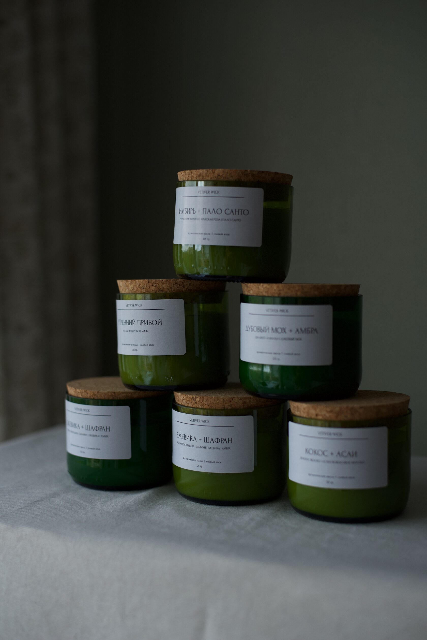 Комплектация - Свеча из соевого воска в подсвечнике из бывшей бутылки + крышка из пробки, вес свечи без тары - 35 гр.; - Открытка с инструкцией по использованию; - Эко-упаковка с бумажным наполнителем.