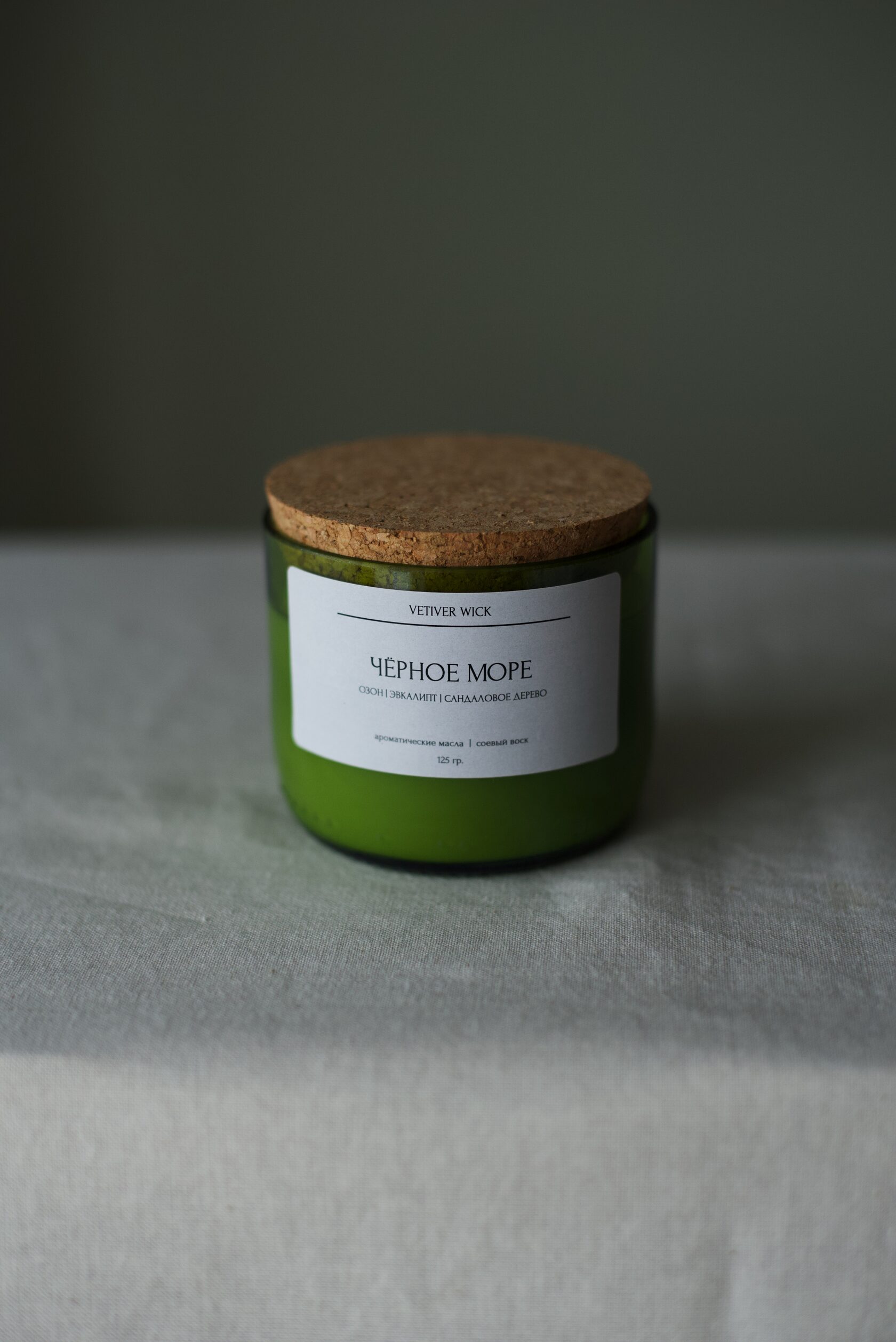 Свеча из соевого воска с добавлением ароматического масла, стеклянный подсвечник из бывшей бутылки + крышка из пробки. Деревянный фитиль. Все процессы производства полностью ручная работа.